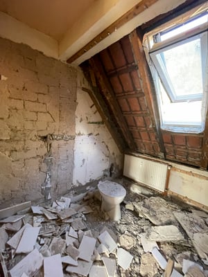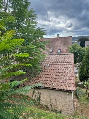 Zuletzt wurde der kleine Anbau abgerissen und durch einen zweigeschossigen Anbau mit Bad im EG und Schlafzimmer im OG ersetzt.