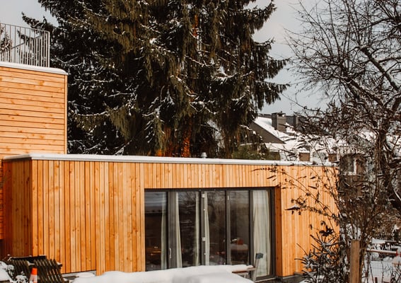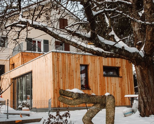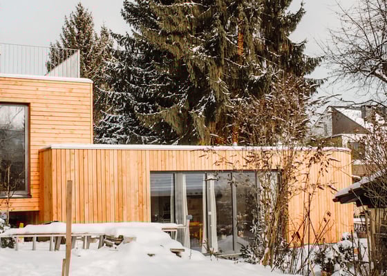 Als Holztafelbau, teilweise vorgefertigt, wurde das Projekt in nur 4-monatiger Bauzeit umgesetzt.