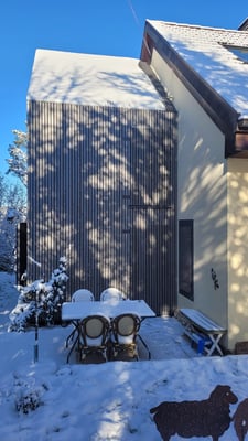 Das kleine, ehemalige Bauernhaus, welches im Dachgeschoss einen Heuspeicher beherbergte, wurde über einige Jahre hinweg ausgebaut und modernisiert.